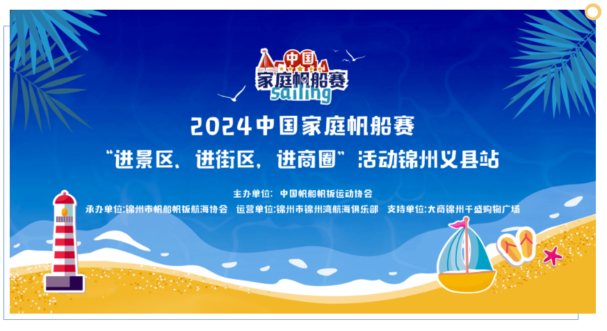 近日,国家体育总局、商务部、文化和旅游部联合印发了《关于开展“体育赛事进景区、进街区、进商圈”活动的通知》。为响应国家号召,大力推进帆船项目发展,发挥帆船对推进健康中国、体育强国和文化强国建设,加速释放体育产业发展动能、助力经济社会发展的积极作用,同时让更多人感受到帆船文化的魅力,让帆船文化切实走近百姓身边,协会提倡、鼓励家帆赛各赛站因地制宜、因时制宜、因需制宜选择开展各类活动进景区、进街区、进商圈。截至目前,2024中国家庭帆船赛已有三亚站、秦皇岛西港开埠地站、宁波梅山湾站、锦州站等赛站举办多场特色活动,让人们近距离地感受帆船文化。以下为四个赛站“三进”活动展示,后续赛站活动将持续更新。2024中国家庭帆船赛锦州义县站走进大商锦州千盛购物广场