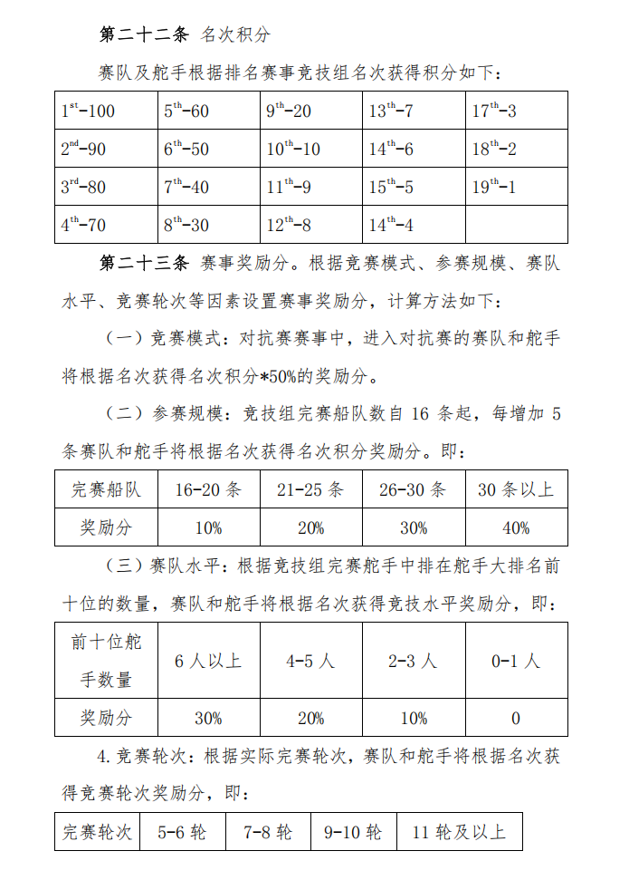 为进一步推动龙骨船运动发展,全面提升国内龙骨船赛事竞赛管理水平及赛队竞技水平,客观、准确评价、表彰、选拔优秀赛队和舵手,完善国内龙骨船赛事竞技排名体系,现发布《中国帆船帆板运动协会龙骨船竞技积分排名榜排名办法(2025年修订版)》。本办法自发布之日起实施。附件:中国帆船帆板运动协会龙骨船竞技积分排名榜排名办法(2025年修订版)(请点击左下角“阅读原文”下载查看附件,提取码:1234)中国帆船帆板运动协会